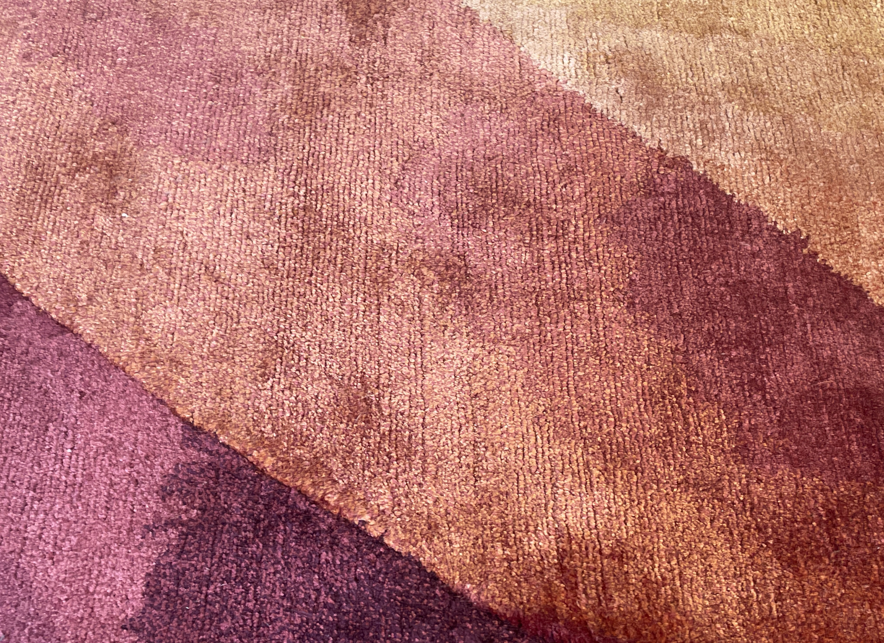 Για τη συνεργασία Art Rug Projects, η καλλιτέχνης δημιούργησε 6 μεταξωτά χειροποίητα χαλιά, εμπνευσμένα από τα στοιχεία που χαρακτηρίζουν την πρακτική της — όπως το φως, το νερό και την ροή τους. Το σχέδιο του χαλιού μοιάζει σαν να κυματίζει, σαν να σχηματίζει ιριδισμούς, όπως αυτούς που βλέπουμε όταν πέφτει το φως πάνω στο νερό. Μέσα από την ύφανση, η εικαστική της γραφή γίνεται πιο απτή, αλλά δεν χάνει τον ποιητικό της χαρακτήρα: η επιφάνεια του χαλιού αποκτά μια σχεδόν ατμοσφαιρική ποιότητα, σαν να ζωντανεύει με την παραμικρή αλλαγή φωτός. Το μετάξι, με τη φυσική του γυαλάδα και το παίξιμό του με το φως, αποδίδει με εντυπωσιακό τρόπο τις «διαφάνειες», τις μεταπτώσεις και τις λεπτοφυείς δονήσεις των έργων.
